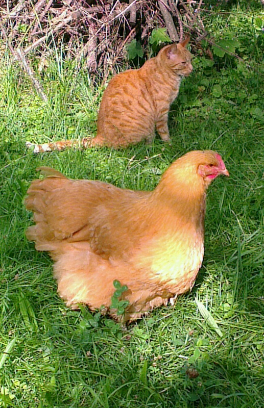 Poule Orpington assortie a chat
