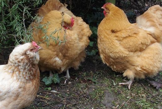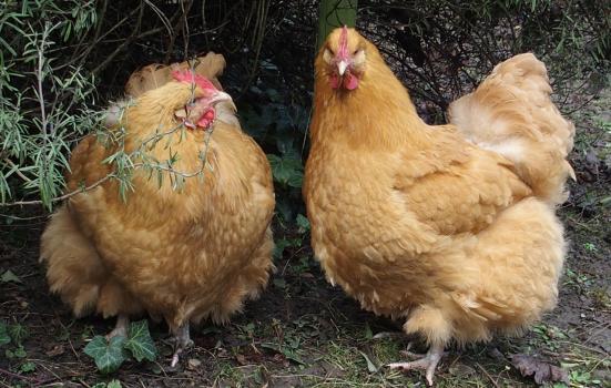 Les deux jeunes Orpington fauve sont, comme la plupart des Orpingtons, calmes et paisibles, même si elles peuvent être joueuses, voire espiègles par moment.